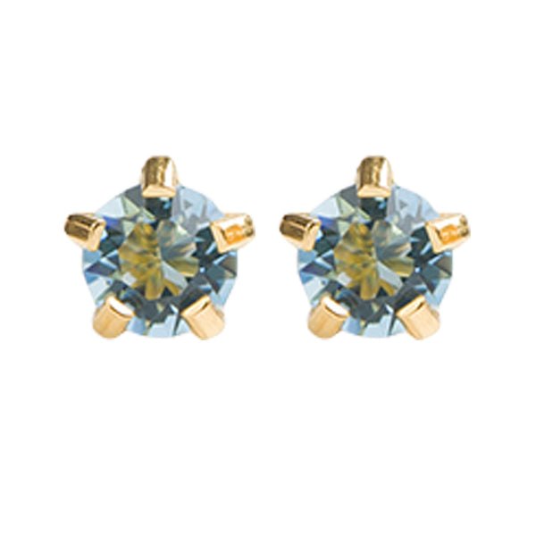 3MM March Ð Aquamarine Birthstone 24K Pure Gold Plated Ear Studs