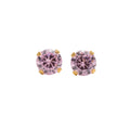 6MM Cubic Zirconia Pink 24K Pure Gold Plated Ear Studs